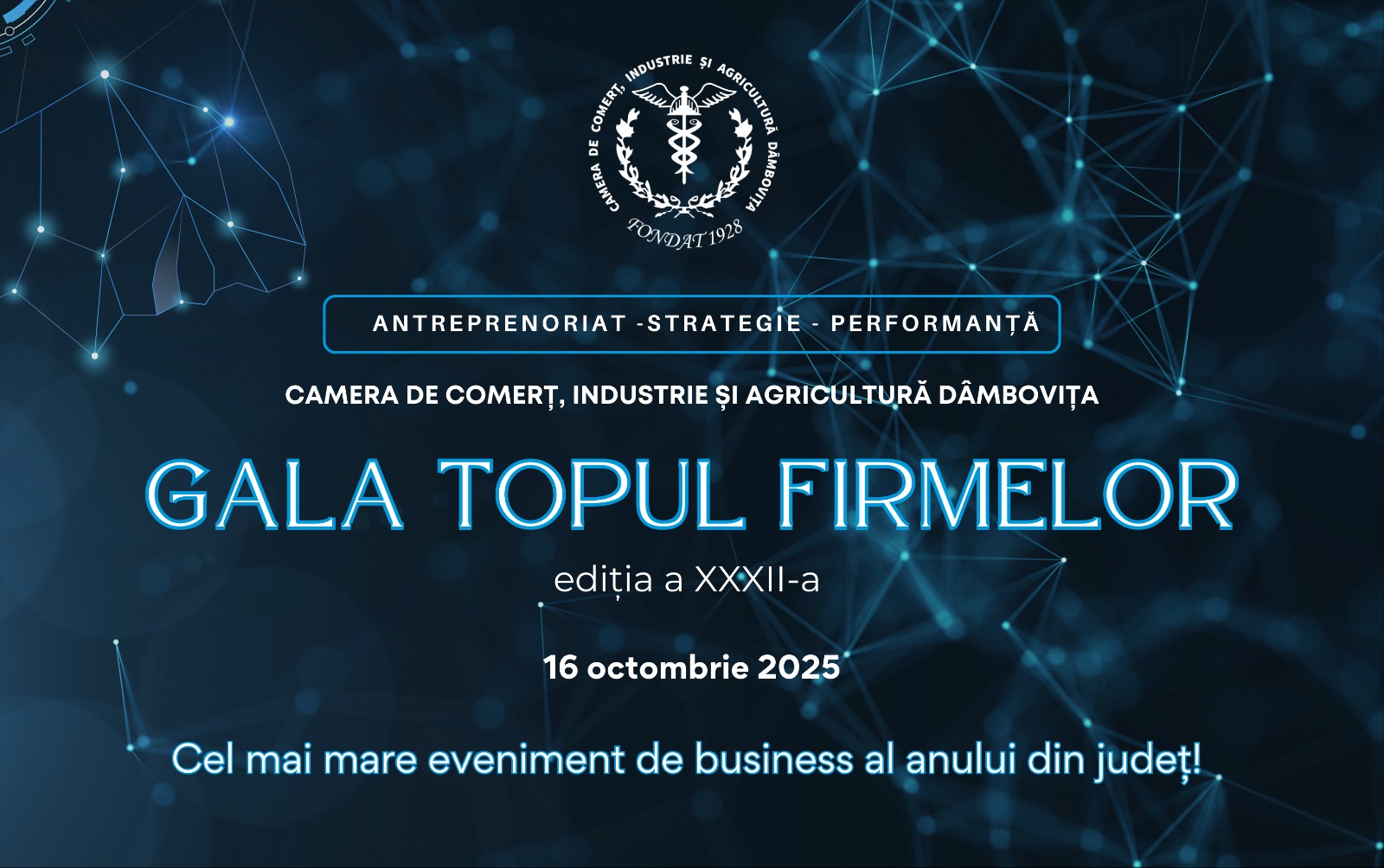 Important! Cel mai așteptat eveniment de business al anului din județul Dâmbovița se apropie: Gala Topul Firmelor din Județul Dâmbovița, ediția XXXII-a, 2025!
