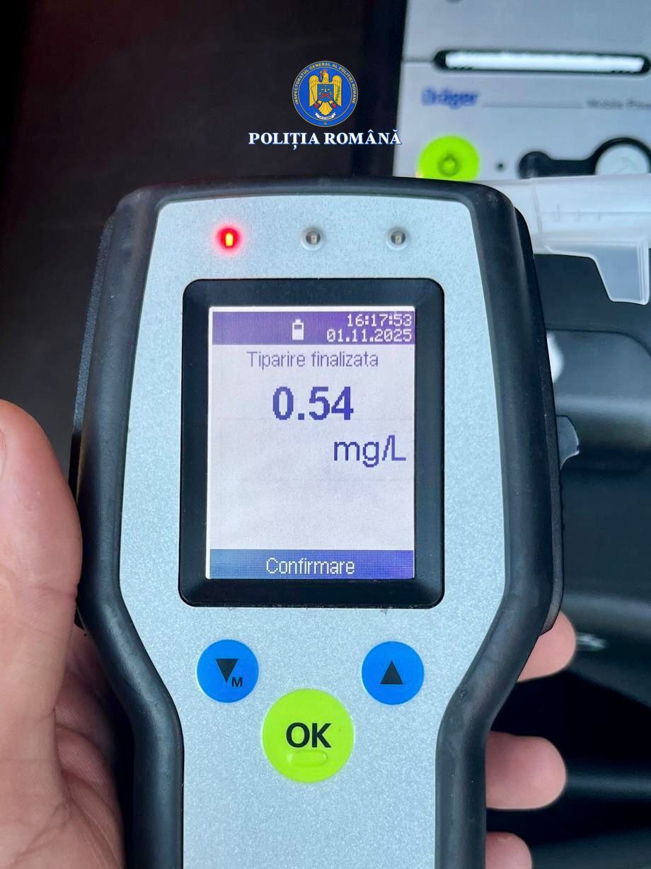 Polițiștii au procedat la testarea conducătorilor auto cu aparatul din dotare, iar în cazul bărbatului a rezultat o valoare de 0,54 mg/l alcool pur în aerul expirat.